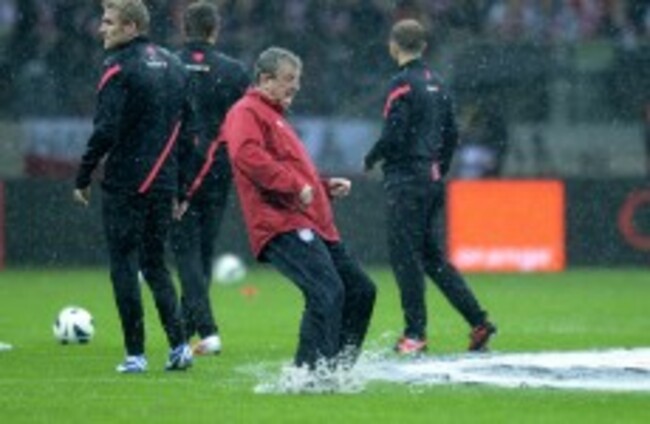 2014 deluge drenched England FIFA Football ITV National Stadium officials Poland Postponed Rain Referee Rio Roof Roy Hodgson Soccer super soaker torrential Warsaw WCQ World Cup