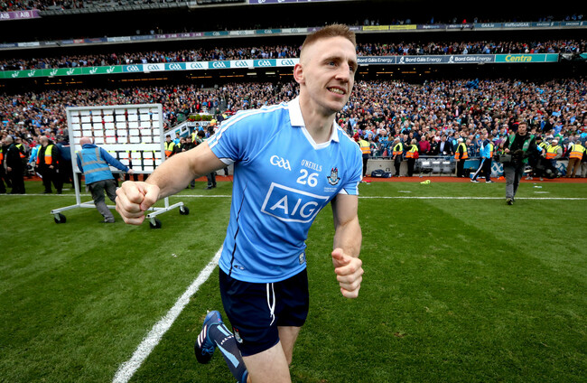 Former Dublin full-forward Eoghan O'Gara celebrating his county's 2017 All-Ireland success. Ryan Byrne/INPHO