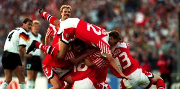 The player who scored the first of Denmark's two goals in their win over Germany in the decider later earned a move to the Premier League. Do you remember his name?
