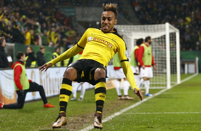 PIERRE-EMERICK AUBAMEYANG hit his 27th goal of the season on Wednesday to help Borussia Dortmund seal a 2-0 win at Augsburg to reach the quarter-finals of the German Cup.