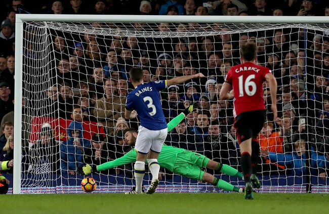 Former Everton star Marouane Fellaini had only been on the field for two minutes as a United substitute when he tripped Idrissa Gueye unnecessarily and Baines made no mistake with a clinically-taken 89th minute penalty.