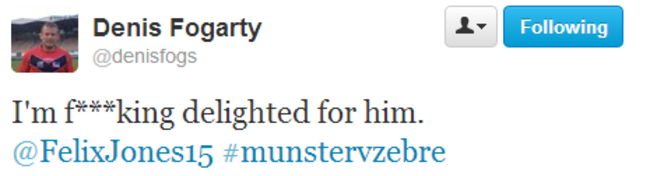Stade Aurillicois, the French D2 side of Denis Fogarty and coach Jeremy Davidson, lost 36-20 to league leaders Oyonnax. Munster’s win and the try for Felix Jones did cheer up Fogarty, however.