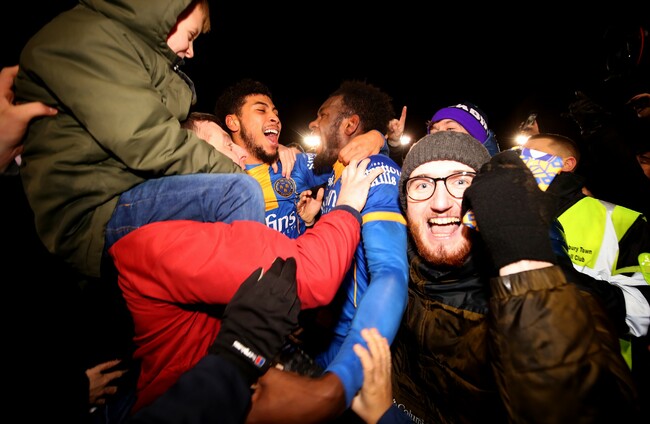 A late Aaron Pierre strike secured Shrewsbury a fourth-round tie with the runaway Premier League leaders, and sparked bedlam.