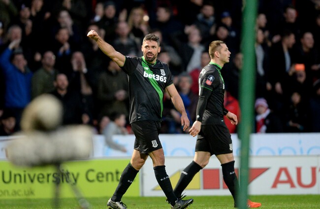 Stoke City's Jonathan Walters celebrates after scoring his side's second goal. Anna Gowthorpe