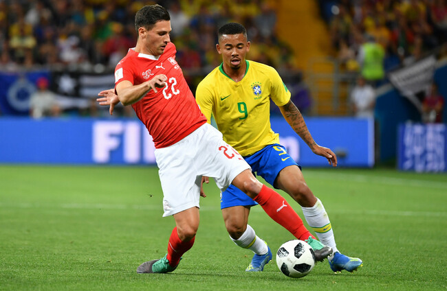 Switzerland's Fabian Schaer under pressure from Gabriel Jesus of Brazil at the 2018 World Cup. DPA/PA Images