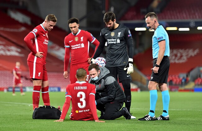LIVERPOOL WILL LIKELY discover tomorrow the extent of the injury Fabinho sustained during Tuesday’s 2-0 win over FC Midtjylland.