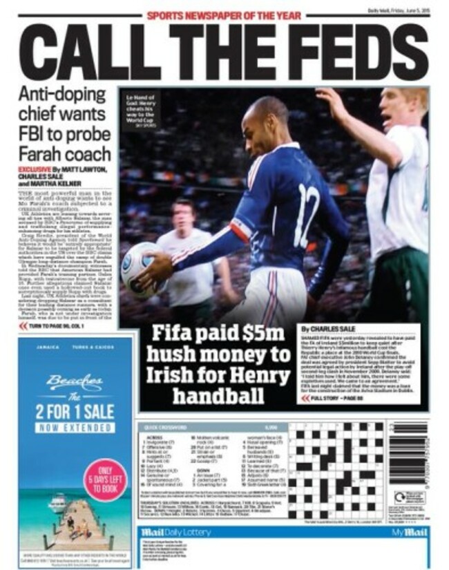 In yet another day of FIFA revelations, FAI chief executive John Delaney revealed during an interview with RTÉ Radio yesterday that the organisation had received payment related to the handball by Thierry Henry, which cost Ireland a place in the 2010 World Cup. This admission came just days after FIFA president Sepp Blatter was forced to resign amid a corruption scandal.