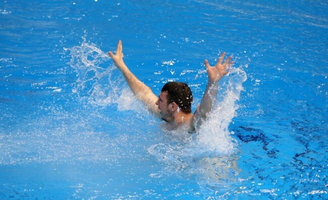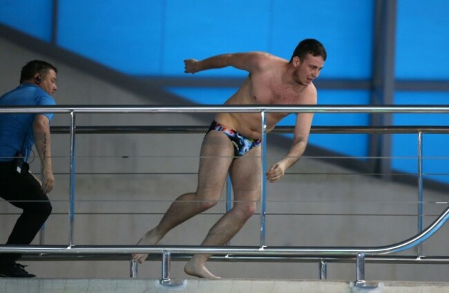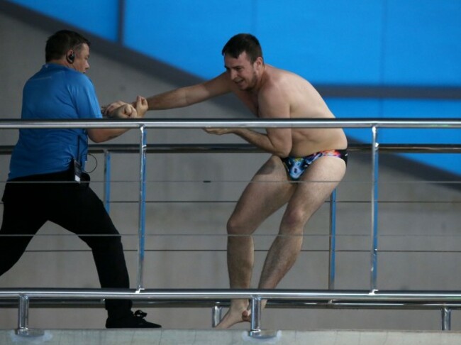 However, the event was gatecrashed by an audience member who decided he wanted a go at the 10m board, despite the best efforts of security: