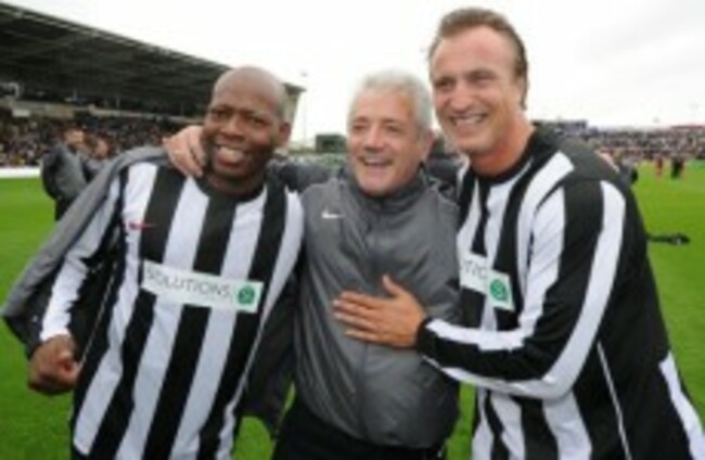 Tino Asprilla, (left) Kevin Keegan (centre) and David Ginola prior to an Entertainers Reunited match at Kingston Park, Newcastle. Owen Humphreys/PA Archive/Press Association Images