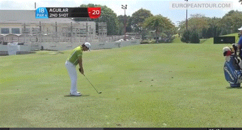 WHEN FELIPE AGUILAR approached his second shot on the par-four 18th during the final round of The Championship at Laguna National in Singapore this morning, he must have been pretty confident of getting the ball close enough for the birdie that would likely see him into a playoff.