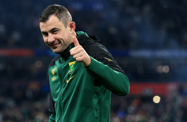 Yet the man with the most interesting seat in the house was located right between South Africa’s box-office coaching duo. Felix Jones might not have generated as many headlines as Erasmus or Nienaber but the Irishman proved an integral part of South Africa’s journey to winning back-to-back World Cup titles.
