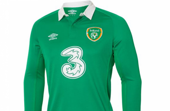 FIFA currently prohibits national shirt sponsorship, although clubs use it widely while Ireland replica jerseys sold to fans contain the logo of their main sponsor ’3′.
