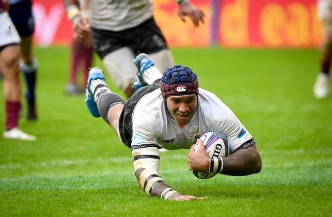 The Lyon winger charged through four defenders before a one-handed off-load to flanker Mesulame Kunavula on his international debut.