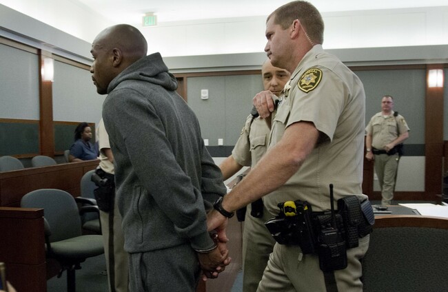 Floyd Mayweather Jr, left, is led away in 2012 to begin a 90-day jail term for attacking his ex-girlfriend in September 2010 while two of their children watched. The judge who sentenced Mayweather allowed him to remain free long enough to headline a 5 May fight. AP/Press Association Images
