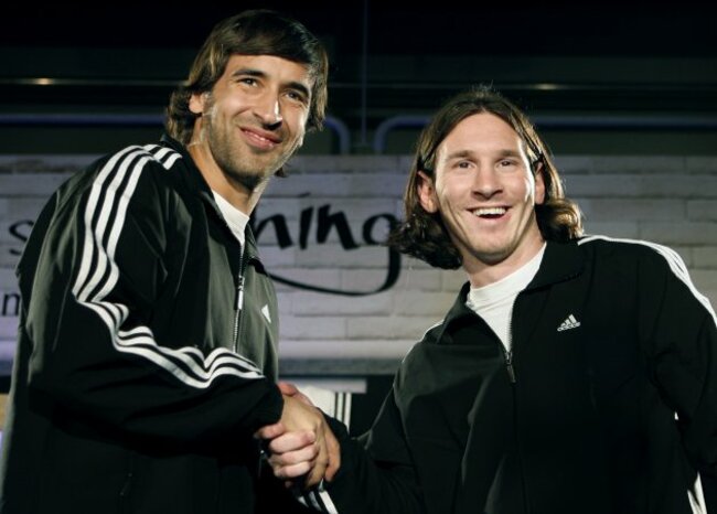 Raul and Messi: Just a couple of cancerians, hanging out. (AP Photo/Daniel Ochoa de Olza)
