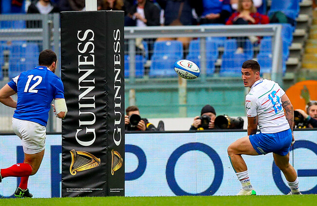 After a solid start from the hosts in Rome, Tommy Allan kicked the Azzurri to a 6-0 lead before France found the gap they were waiting for after 16 minutes. Maxime Medard made a cut and got his offload away to set Penaud haring down the right wing and he then found the supporting run of Antoine Dupont to complete a terrific try.