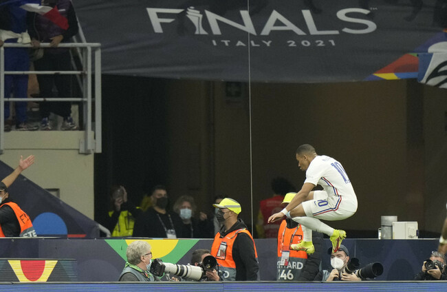 France's Kylian Mbappe celebrates after scoring the winner. Luca Bruno