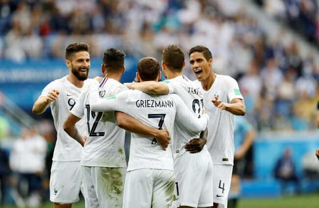 RAPHAEL VARANE AND Antoine Griezmann scored as France advanced to a World Cup semi-final against either Belgium or Brazil after easing past Uruguay.