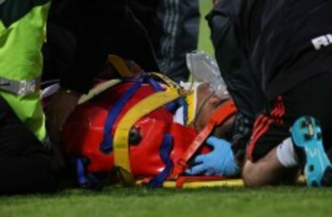 The 24-year-old had scored a try to send Munster 21-3 ahead against London Irish, was stretchered from the field following a lengthy delay wearing a neck brace, having impressed the crowd in the first half.