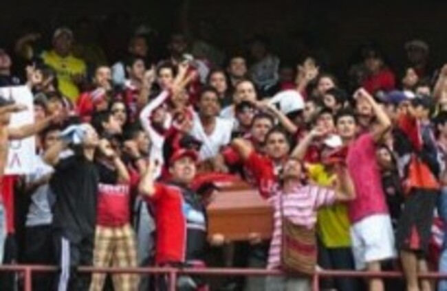The friends of the teenager – who was a member of their fan group – watched the game against Envigado as they shouldered and held the coffin throughout.