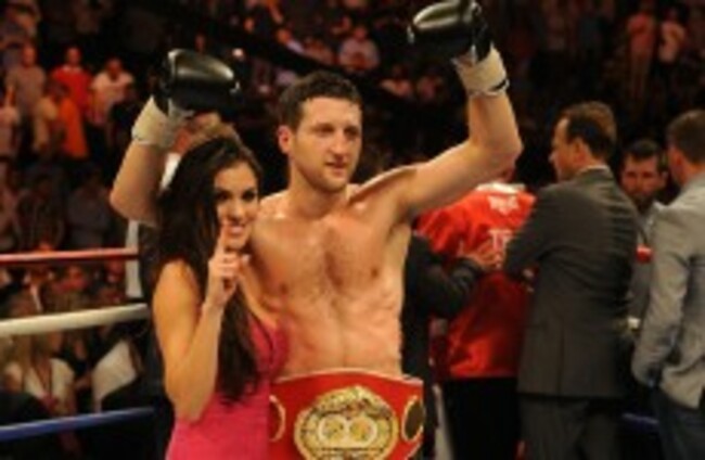 Carl Froch celebrates winning the IBF super-middleweight title with victory over Lucian Bute with girlfriend Rachael Cordingley. Andrew Matthews/PA Wire/Press Association Images