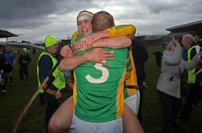 Dan Currams and Ger Healion of Kilormac celebrate at the end of the game. (©INPHO/Donall Farmer)