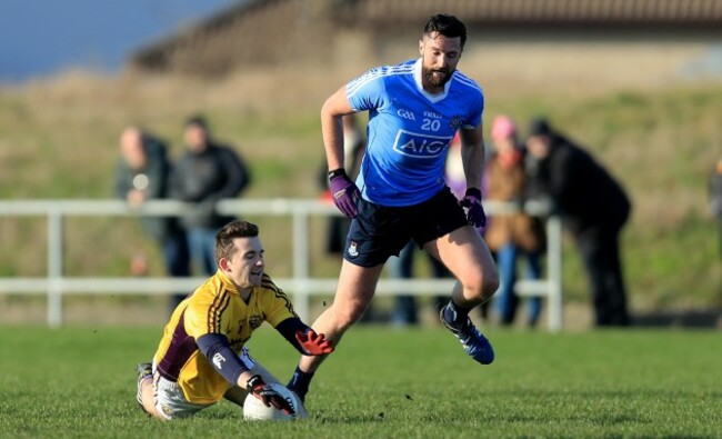 Dublin’s Ross Hazley with John Turbit of Wexford compete for possession