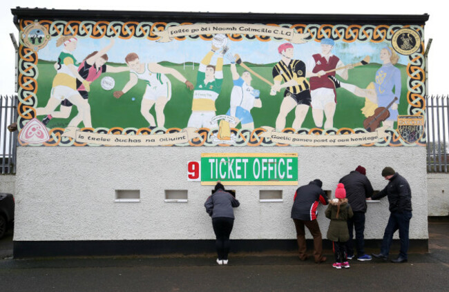Tyrone and UUJ fans buy their tickets before their game at Healy Park, Omagh