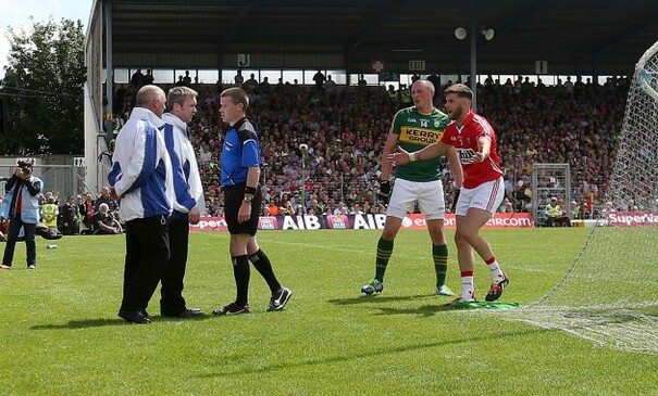 Padraig Hughes consults with his umpires
