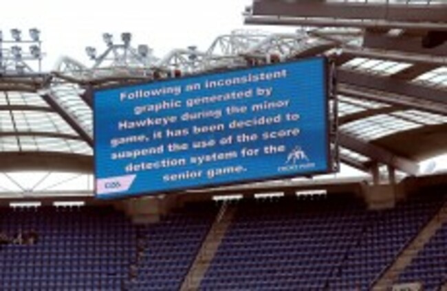 “Following an inconsistency in the generation of a graphic by Hawk-Eye during today’s minor hurling semi-final, the decision was taken to suspend use of the score detection system for the senior game.