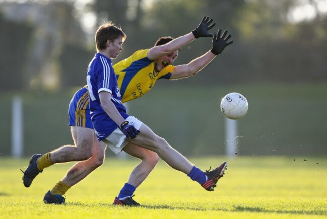 Cratloe’s David Collins in action against Seamus Lawlor of The Nire
