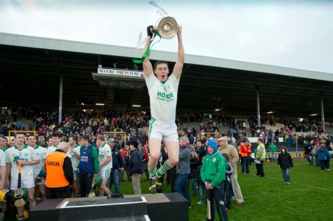 Ballyhale’s Henry Shefflin and TJ Reid lift the Kilkenny senior trophy