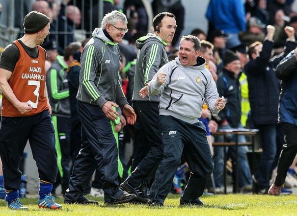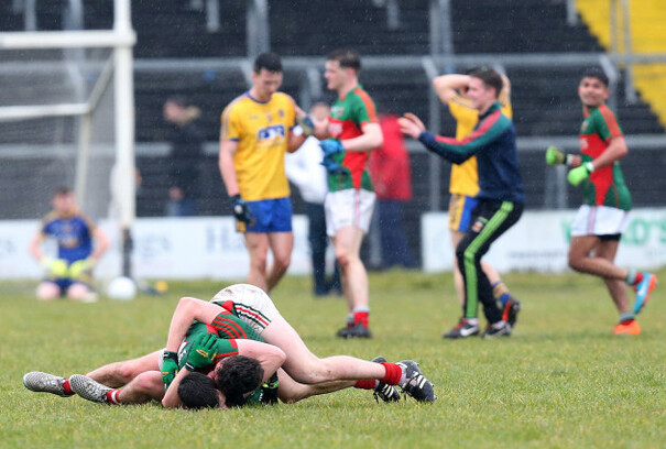 Diarmuid O’Connor and Michael Hall celebrate at the final whistle.