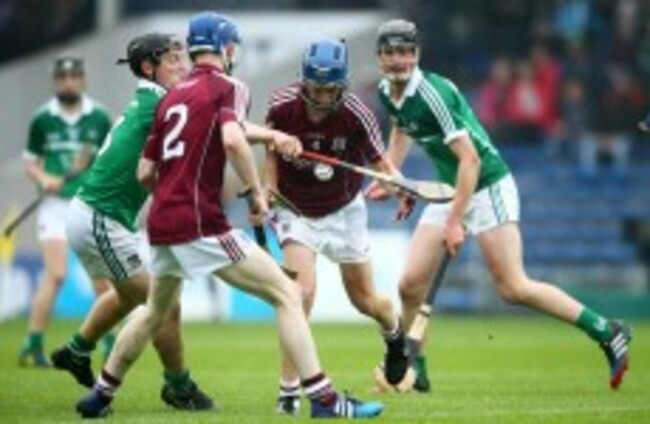 Galway and Limerick players battle it out for possession. Cathal Noonan/INPHO