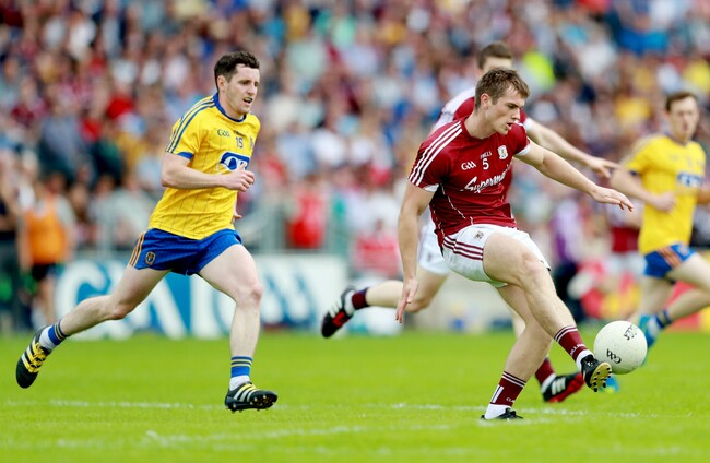Roscommon’s Ciaráin Murtagh in pursuit of Liam Silke of Galway.