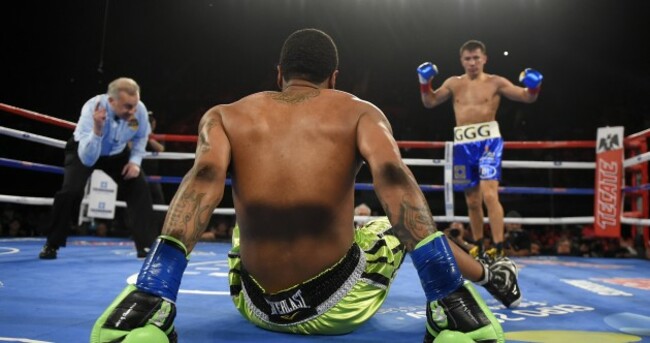 Golovkin floored Wade twice in the second round, four times in total, the killer blow coming in the form of a powerful right hand as the Kazakh boxer improved to 35-0 with his 16th successful title defence.