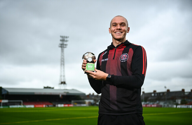 The Donegal native, who is the Premier Division’s top goalscorer with 12, scored four goals against Drogheda and also proved the difference with his effort in the derby win over Shamrock Rovers last month.