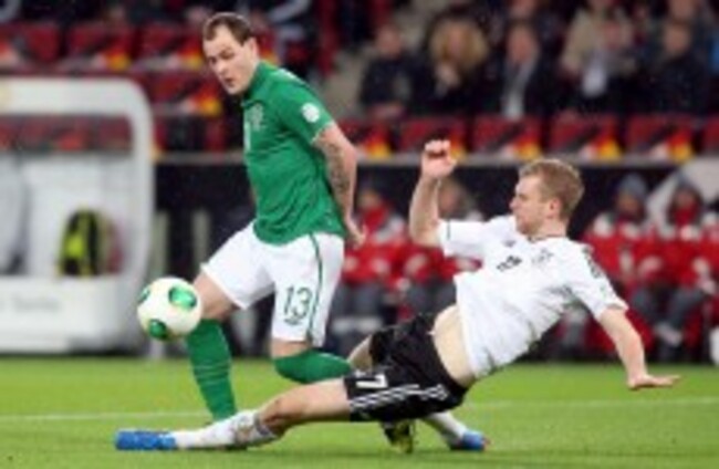 Ireland are a goal down. Stokes does well initially but plays a stray pass in midfield and Philipp Lahm picks up possession. The German captain plays Sami Khedira who tries a speculative effort which deflects off Ciaran Clark and past Forde. Disappointing.