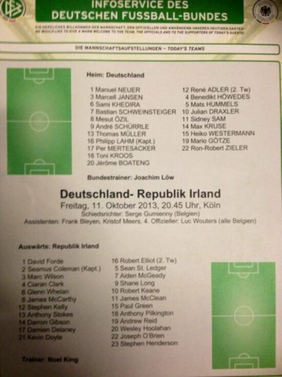 Guten abend und wilkommen! It’s over to the RheinEnergieStadion where Ireland face Group C leaders Germany in their penultimate World Cup qualifier of the current campaign.