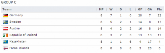 Tentavive and full of nerves in the first half, slightly better in the second having created a couple of real chances, Ireland are outclassed by a far superior team mathematically have no chance of qualifying for next year’s World Cup. Germany are definitely through and will be in the shake-up no doubt.