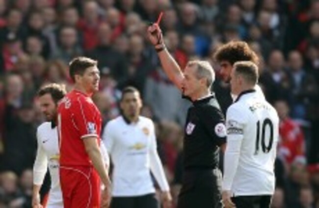 The incident marked the sixth time Gerrard has seen red in the Premier League and the second time he’s been sent off against United.
