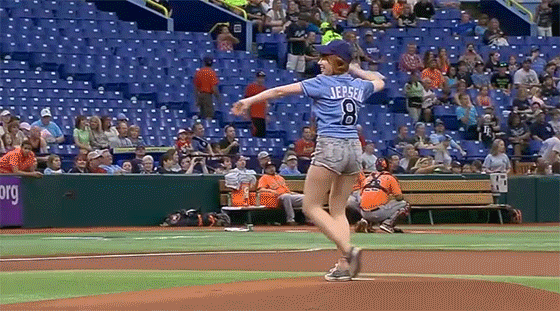 Jepsen, who is scheduled to perform a postgame concert for the Rays, was asked to throw out the first pitch and it did not go well. Here are two GIFs showing the pitch…