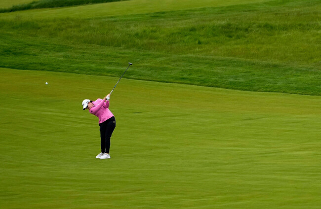 With little wind, Erin Hills, the rolling 6,829-yard par-72 layout in Erin, Wisconsin, offered perhaps its most benign face for the first round of the first US Women’s Open to be held there.