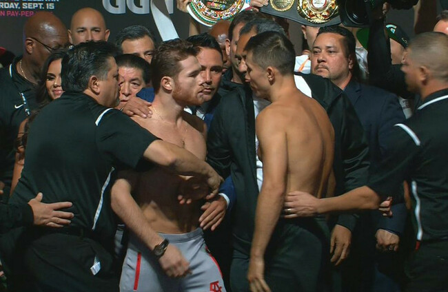 Spike and Lemieux, Canelo and Golovkin separated during fiery Vegas weigh-ins