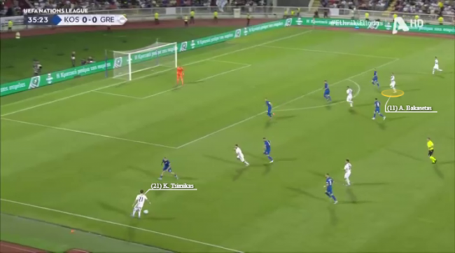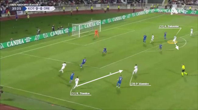 All of this creates a situation where the attacking width then must be provided by the full-backs. Thankfully, for Greece, they have the ideal outlets in George Baldock (Sheffield United) and Konstantinos Tsimikas (Liverpool).