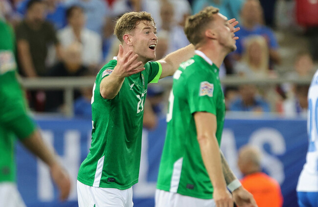 Greece, with their both full backs pushed high throughout, were suddenly exposed but Ogbene had nothing in the way of support and had to settle for a corner as both Ferguson and Troy Parrott – the one change from Thursday, were further back.
