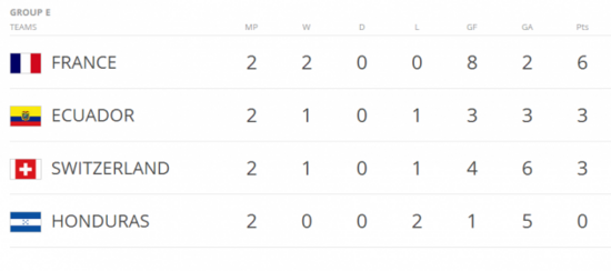 FRANCE MAY NOT have been mathematically guaranteed their spot in the round of 16 at this year’s World Cup but we’d have eaten our berets if they didn’t top the group. Ecuador just had to match or better Switzerland’s result to join them and we’d all the action from Group E.