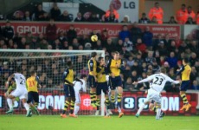 BAFETIMBI GOMIS SCORED the goal that saw off Arsenal at The Liberty Stadium earlier but it was Gylfi Sigurdsson’s equalising free-kick that stole the show.