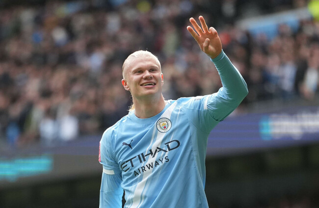 Haaland netted twice late in the first half of the quarter-final at the Etihad Stadium and completed his treble after the interval following an Antoine Semenyo strike.