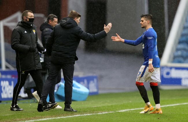 Glen Kamara fed Kemar Roofe in the box, with the former Leeds and Anderlecht hitman’s cross sneaking through Porteous’ legs to find Hagi rushing past a sluggish Paul Hanlon to hook home.